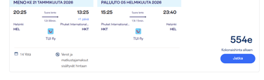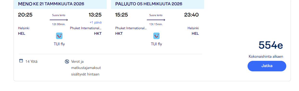 Tui lentää suorilla meno-paluu lennoilla Phuketiin ja Krabille alkaen 554e.